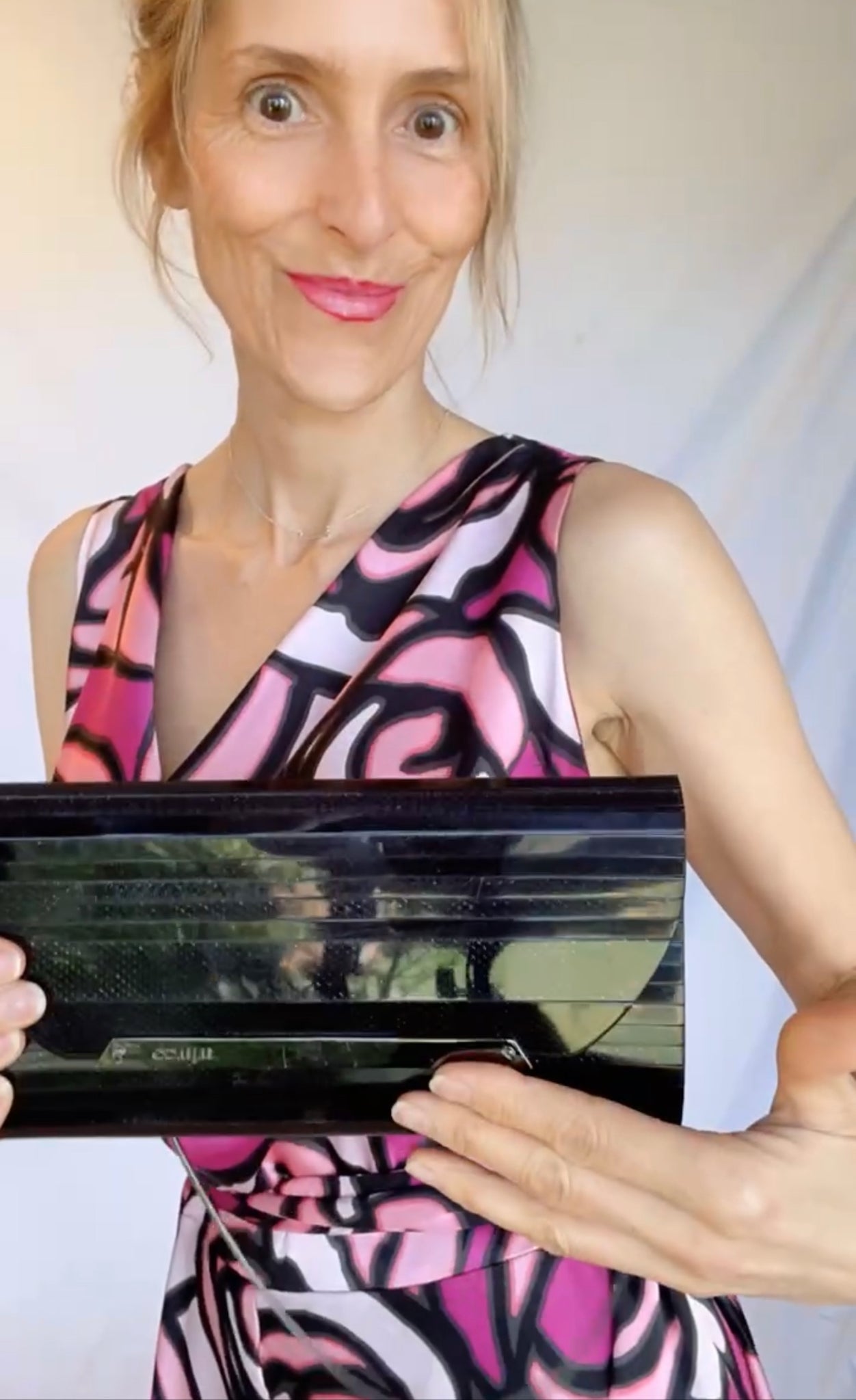 This gorgeous evening clutch by Mimco is constructed from metallic acrylic.