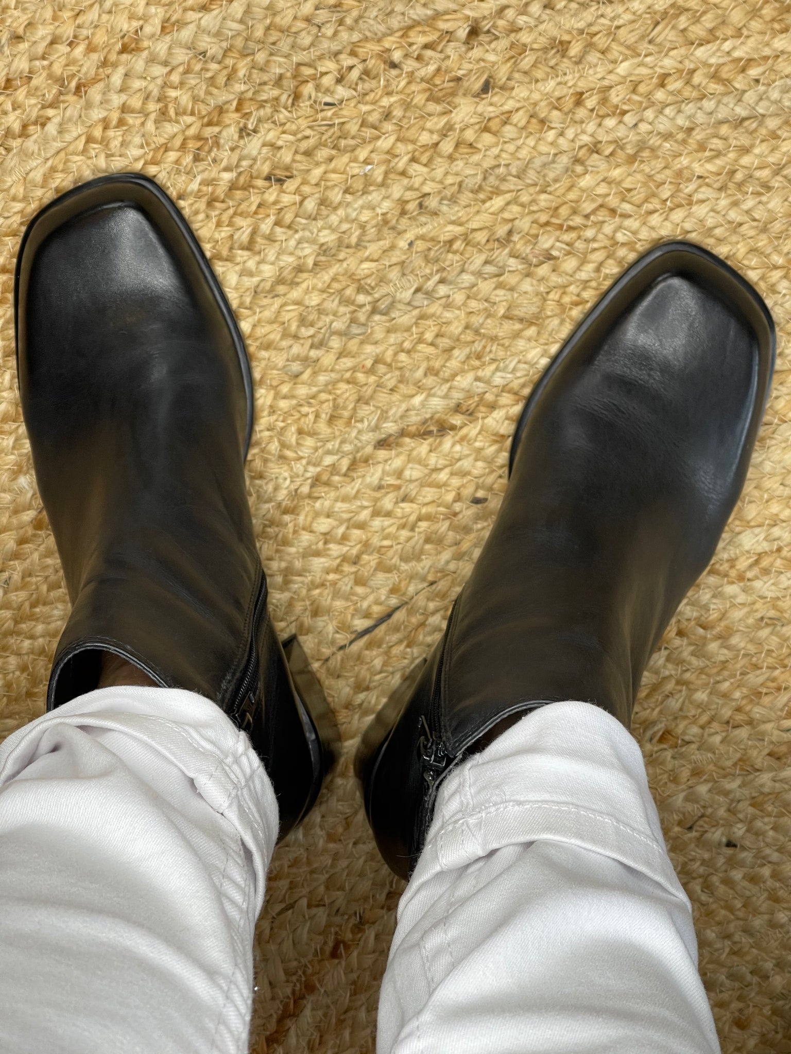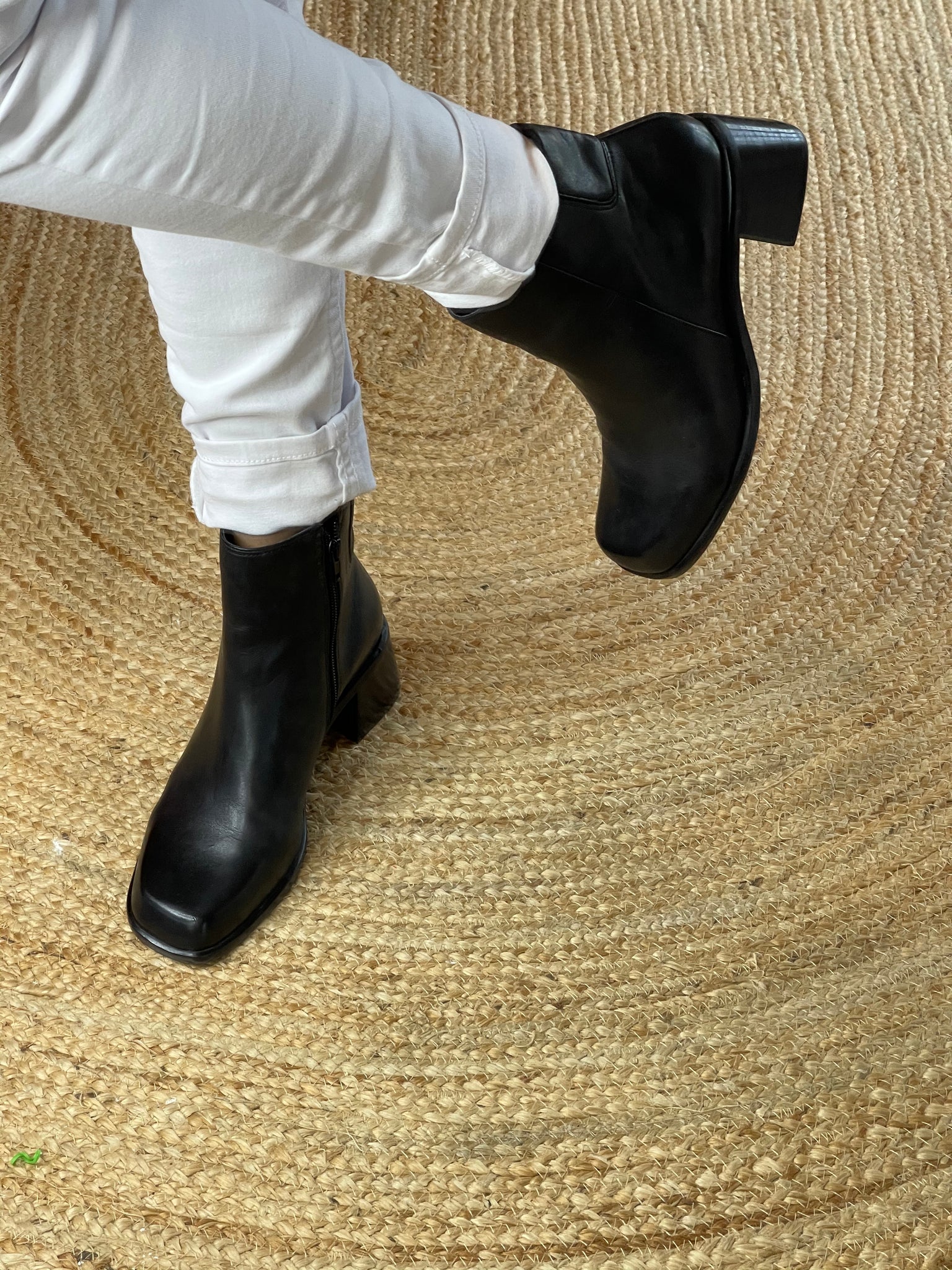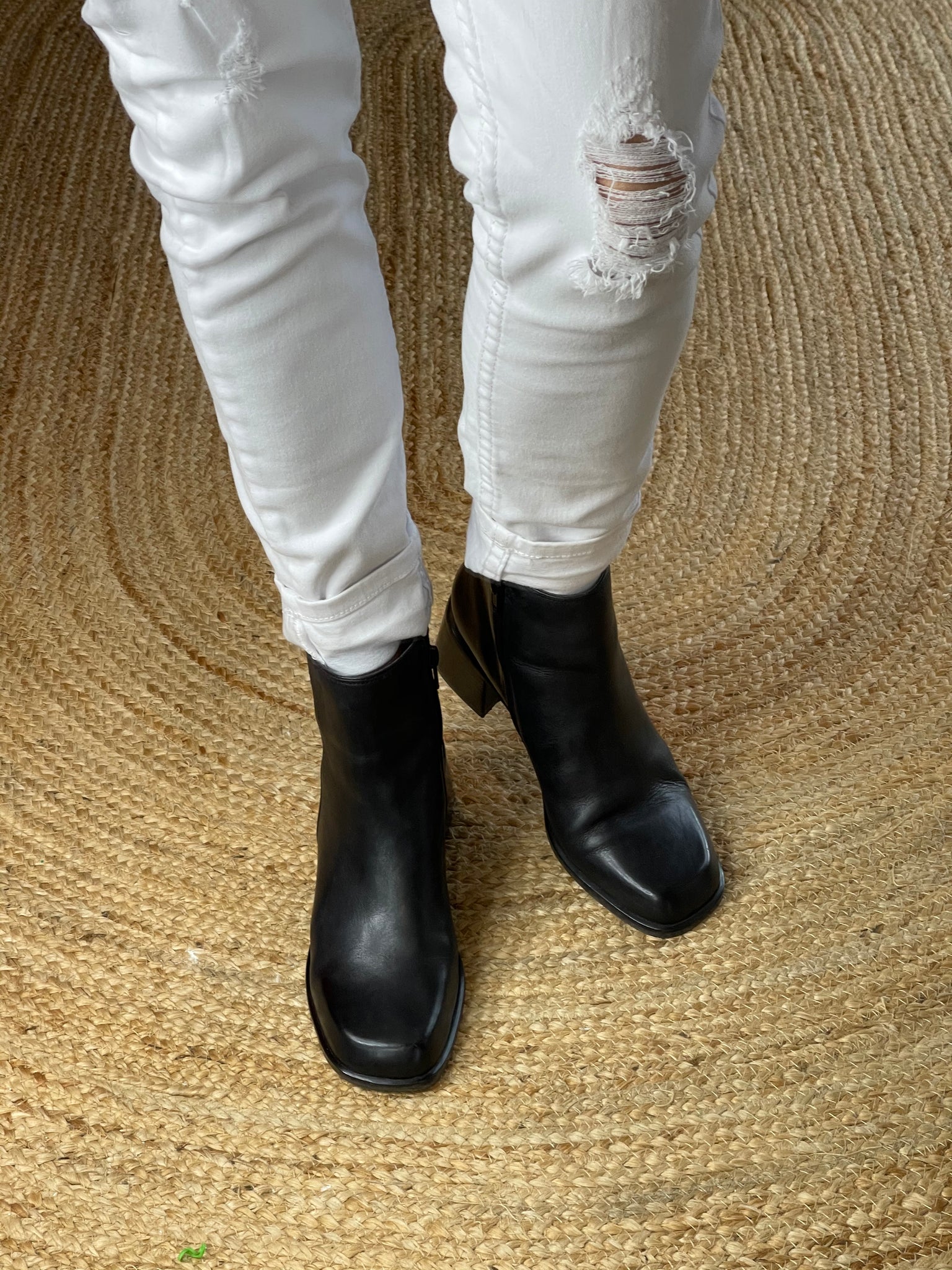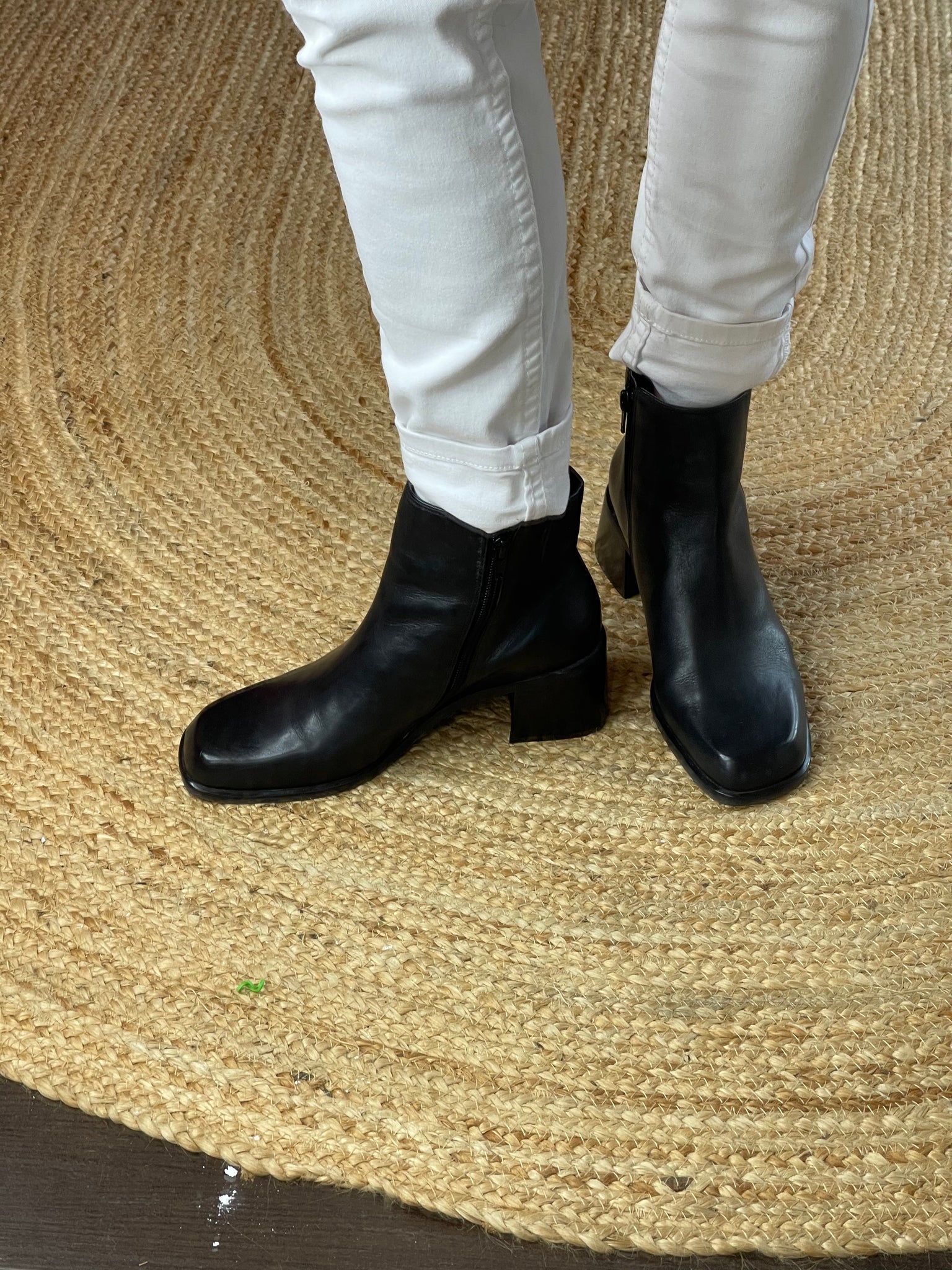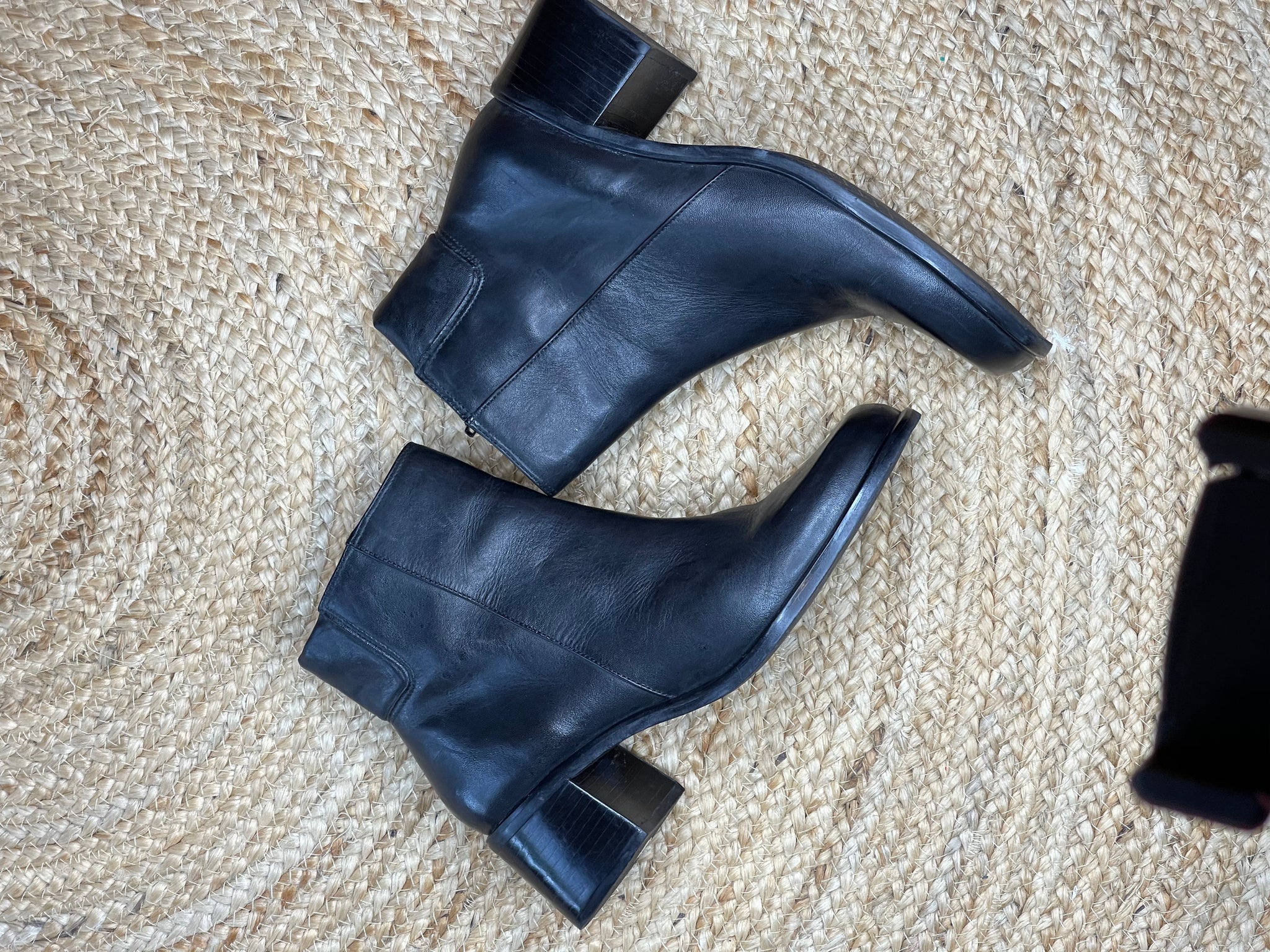 These fabulous barely worn black ankle boots from Easy Steps have a fine leather upper, feature a side zip, non slip grip and sit on a 5 cm stacked block heel.